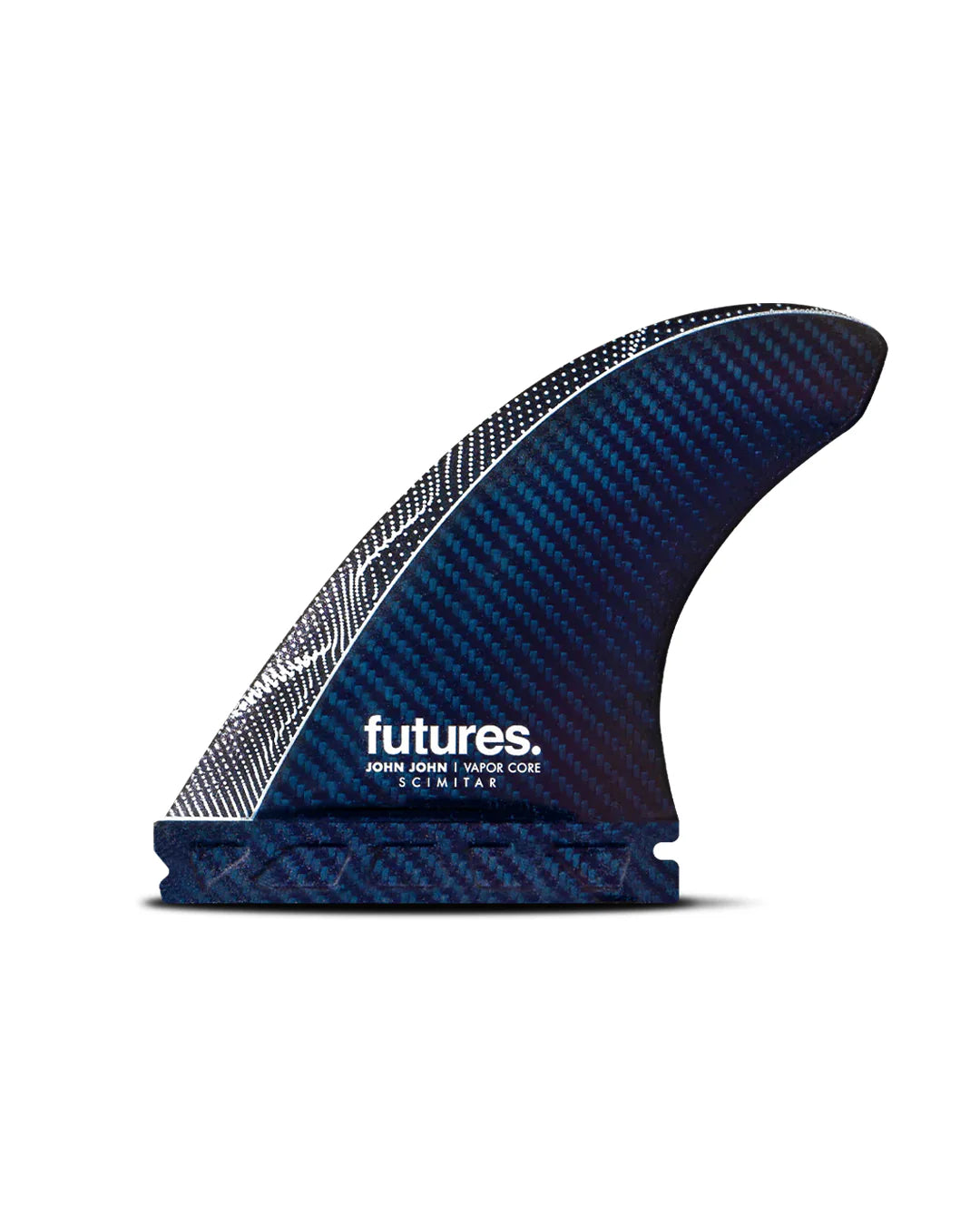 The John John Florence Signature Scimitar thruster in Vapor Core construction is designed for performance surfing in small waves. John rides this fin when he needs to generate speed when the waves are small and lack power. These fins feature a full Vector foil, helping enhance lift and generate speed. The Scimitar Tip is represented by the cut-off portion of the fin, tailoring the grip characteristics. Vapor Core is the lightest performance fin construction ever, consisting of a hollow core. Every single fin is handmade from start to finish at our HQ in Huntington Beach, CA, using aerospace grade materials.