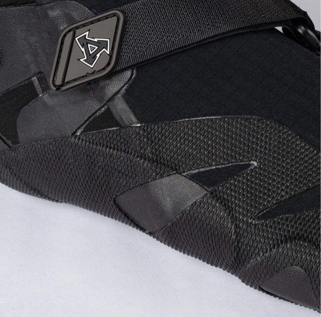 Xcel’s Drylock Boot has been updated with a sleeker design and reduced bulk. This 3-dimensional boot contours to the foot while minimizing excess rubber on the sole, providing a true board feel. The new Thermo Dry Inferno (TDI) interior and Channel Flex exterior make it extremely warm and comfortable. A Drylock Cuff opening prevents flushing, while the ergonomic strap keeps your heel locked in and relieves pressure from the instep. A heel strap also makes for easy pull-on.