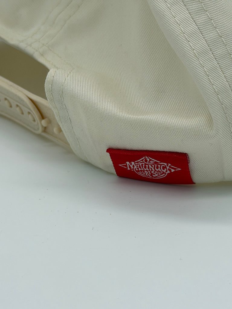 A structured and curved adjustable with flat embroidery with a snapback closure.