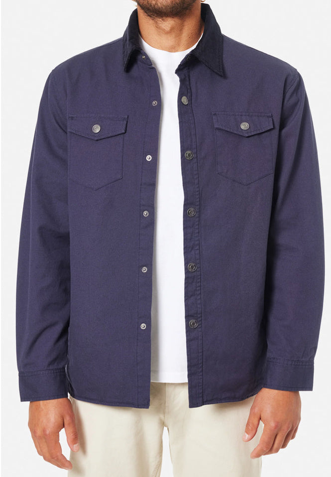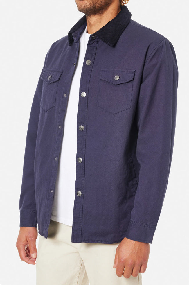 The Campbell Jacket is a 100% cotton button-down made from a canvas shell that offers a custom flannel body liner, poly sleeve liner, corduroy collar & gussets. Side welt pockets and patchchest pockets.