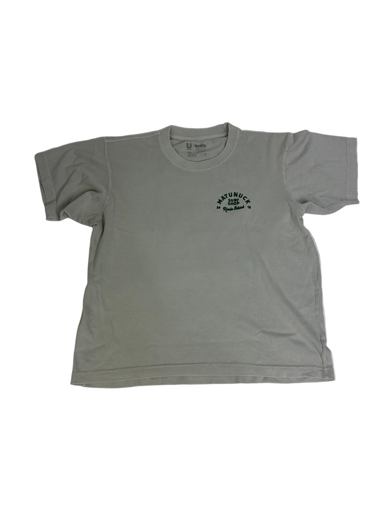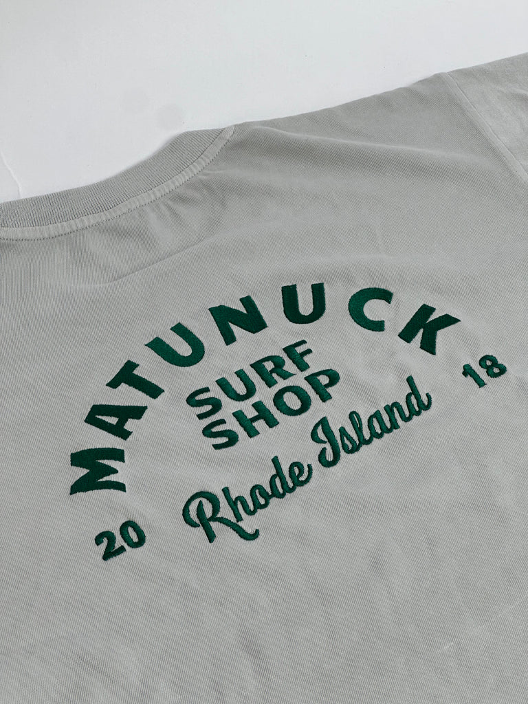 7.6oz heavyweight vintage tee, embroidered with our arch logo front left chest and full back!