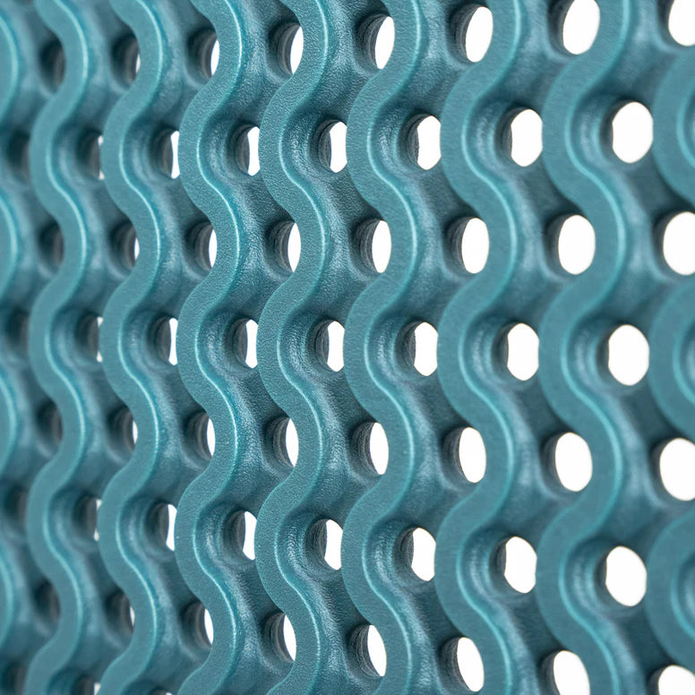 Does its part to address algae overgrowth problems. Each mat is made with 690g of algae biomass, returning 155 liters of fresh water to the habitat, and 97 cubic meters of air is returned to the atmosphere. Read more about materials here.