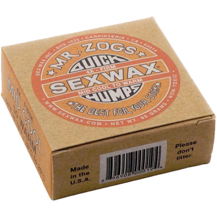 Sexwax Quick Humps surfboard wax formulas are the "go to" choice for professional and experienced surfers around the world, now packaged in recyclable paperboard boxes. This new package is easy to open and can be reused to keep your leftover or partially used wax clean in its original package. Find the ideal balance between stability and stickiness by utilizing these formulas alone or as part of a Basecoat/Topcoat combination.