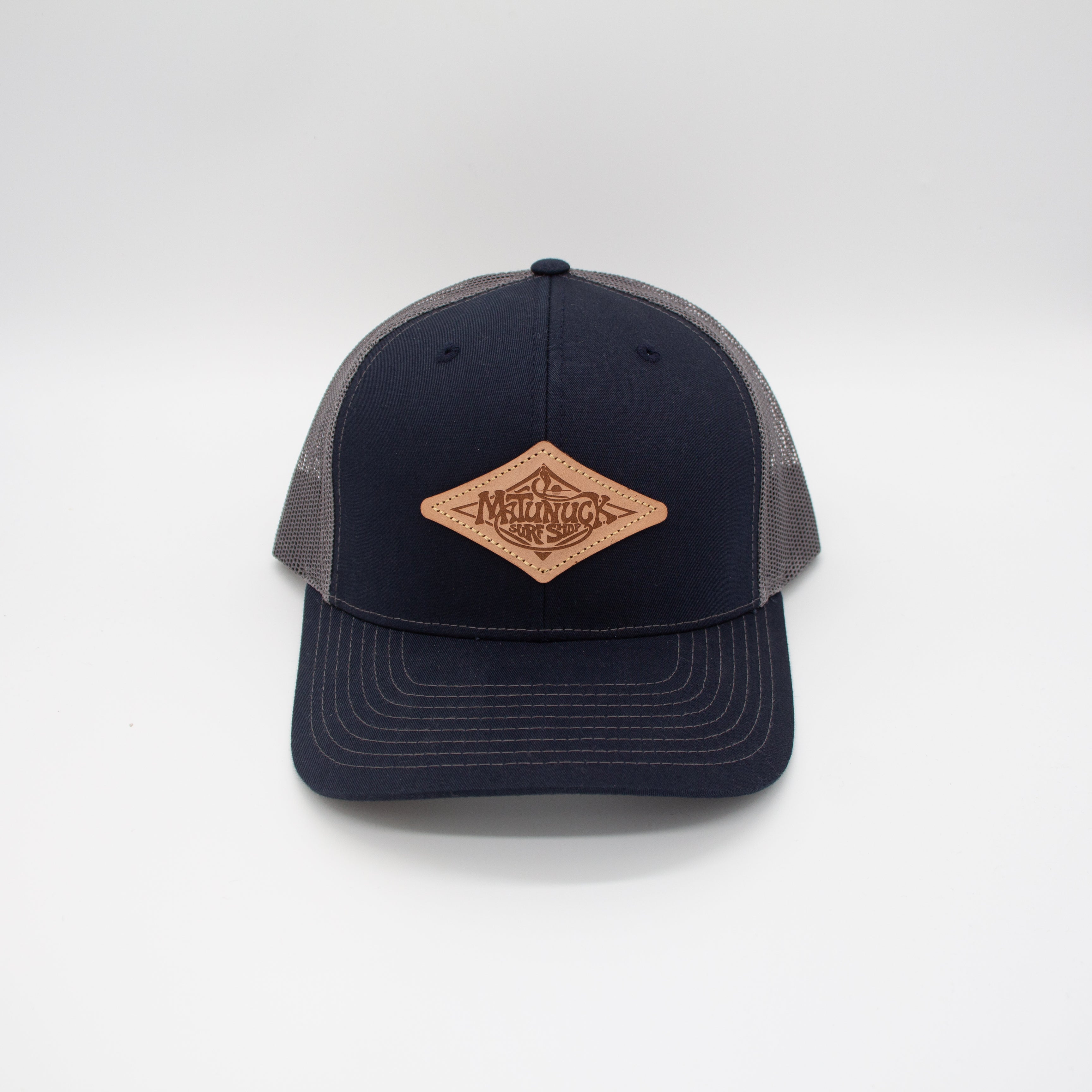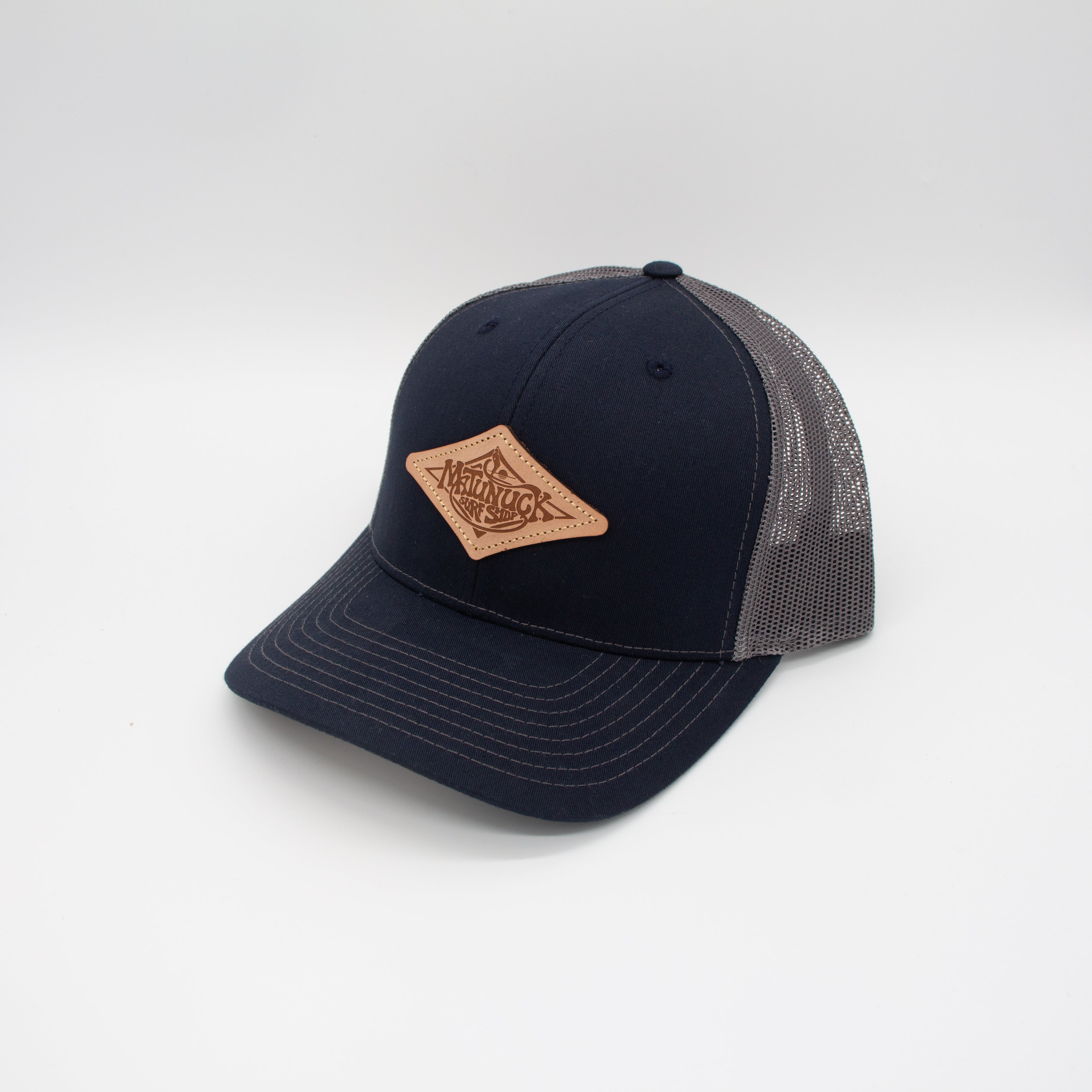 Leather Patch Trucker Hat - Navy/ Charcoal
