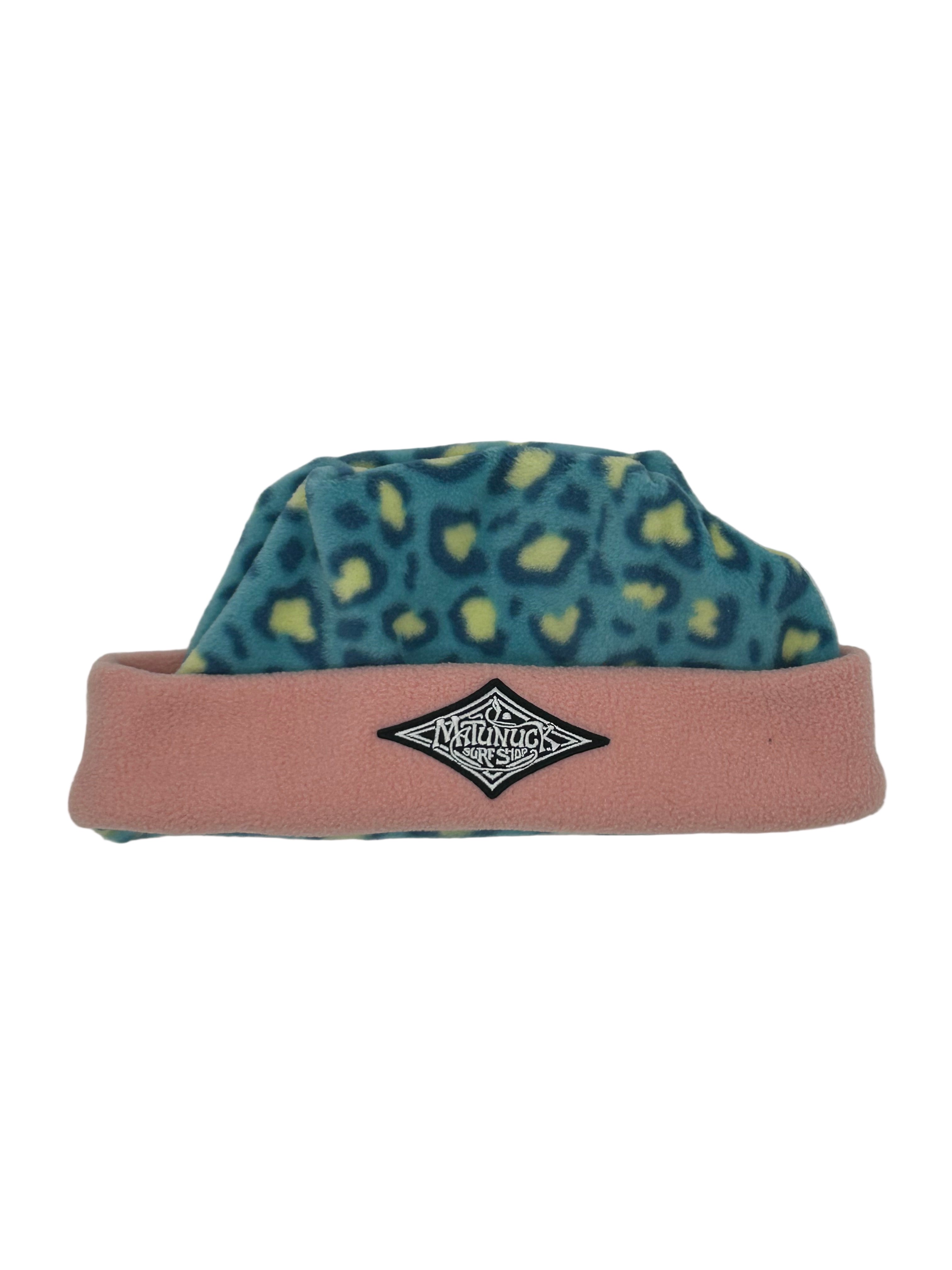 Matunuck Surf Shop x Sunday Sauce Fleece Adult Beanie - Blue Leopard/Cotton Candy Pink